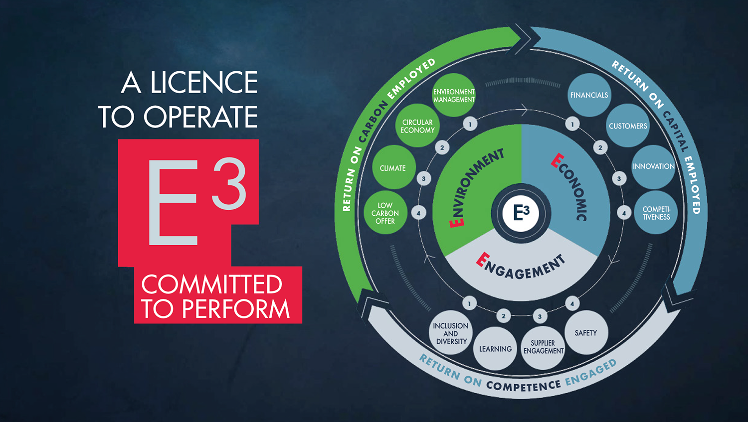 This systemic model combines the Environment, Engagement and Economy dimensions instead of pitting them against each other. It is a unique way of breaking down silos. The E3 tool focuses on measuring performance based on three KPIs, what we call ROCE 3: Return on Capital Employed, Return on Carbon Employed, and Return on Competence Engaged.